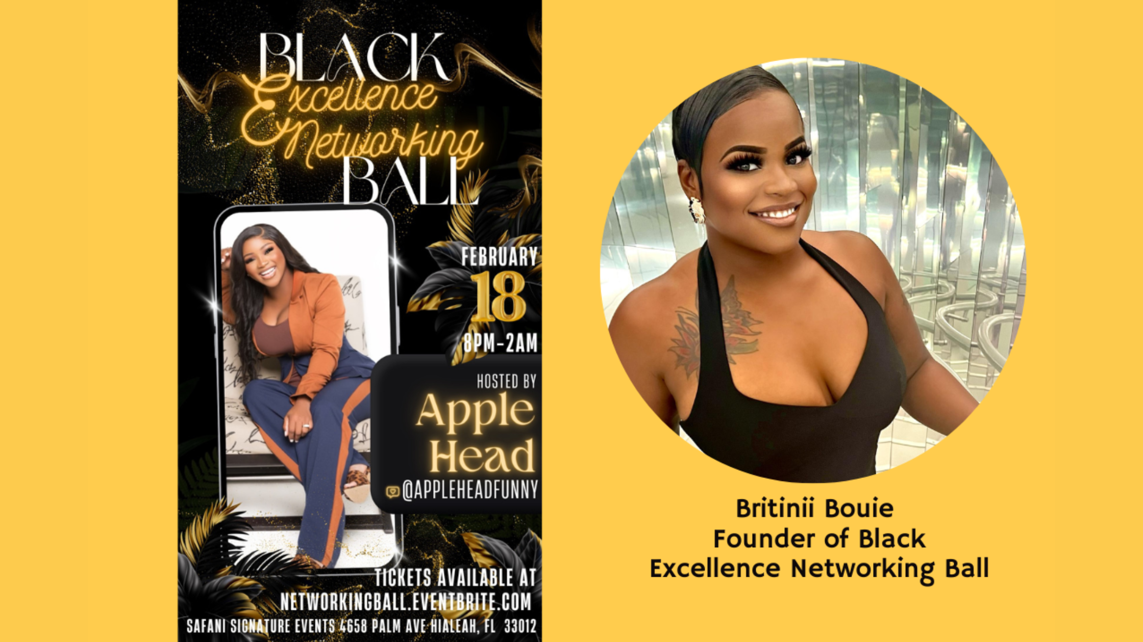 Newly announced, Comedian Apple Head (@elizabethisfunny7) will host this formal, Black-tie event. For more info contact Britinii (305)-724-4588 or email Bebetalksbusiness@gmail.com.